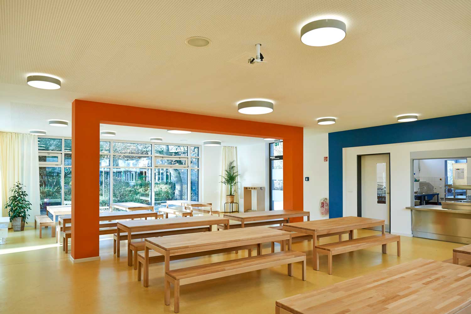 With the introduction of all-day schooling in Hamburg, there is a growing need for additional rooms that fulfil more than just traditional teaching purposes. Canteens in particular play a central role here: they are not only places to eat, but also important meeting places for supervision, socialising and recreation. In order to meet these requirements, modern canteens were planned and built at five locations in the north of Hamburg - all customised to the specific circumstances of the schools and as important components of the all-day concept.