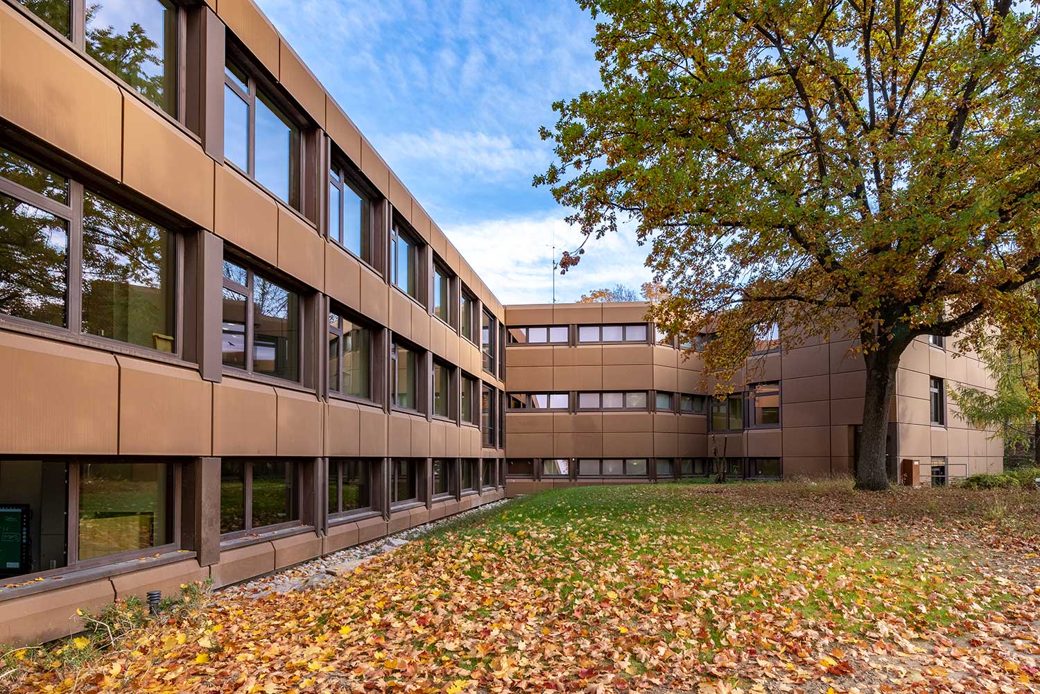 The relocation of the Müllheim commercial school created space for a comprehensive reorganisation of the commercial school complex. The focus was on refurbishing and modernising the interior, while windows and exterior doors were only replaced selectively and depending on use. Flowing transitions between the interior and exterior - for example, through floor-to-ceiling windows that connect the original façade with the new rooms - emphasise the character of the building and create a harmonious connection between the existing and the modern.