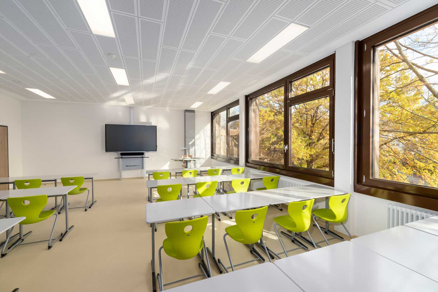 The upper floor will house the school administration and the teachers' room. In addition to new meeting, conference and examination rooms, which can be used flexibly thanks to mobile partition walls, modern work and recreation areas for the teaching staff will be created here. By breaking up the floor plans and removing many of the existing walls, it was possible to create open and light-flooded areas that promote communication and collaboration in everyday school life. The classrooms were brought up to date in terms of ventilation, lighting, acoustics and technical equipment to ensure an optimal learning environment.
