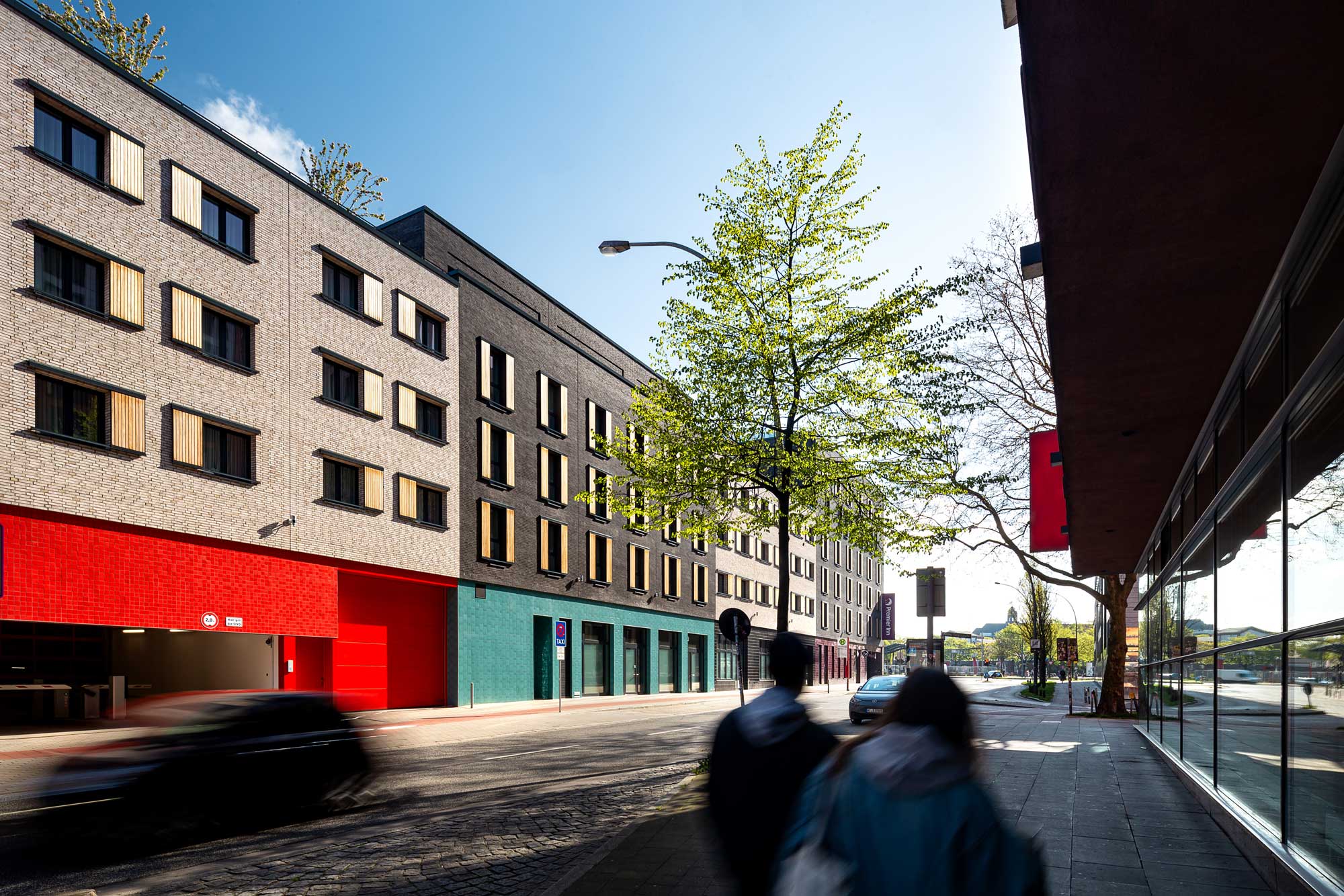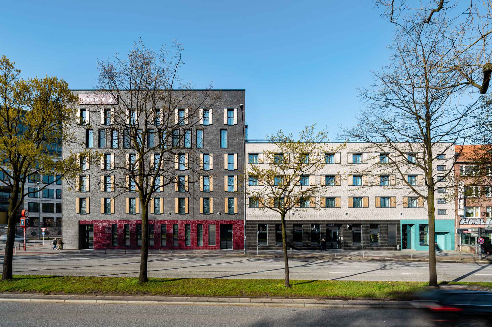 The Hamburg district of St. Pauli is known far beyond the gates of Hamburg for its vibrant nightlife and colourful mix of culture and history. Now the famous, infamous neighbourhood has one more attraction: a new hotel building from the British hotel brand Premier Inn, whose façade pays homage to the flair of New York in the 1950s. With its small-scale and heterogeneous appearance, the hotel blends seamlessly into the multi-layered surroundings, capturing and reflecting the essence of the urban atmosphere of the neighbourhood while being guided by the seven values of the St. Pauli Code.