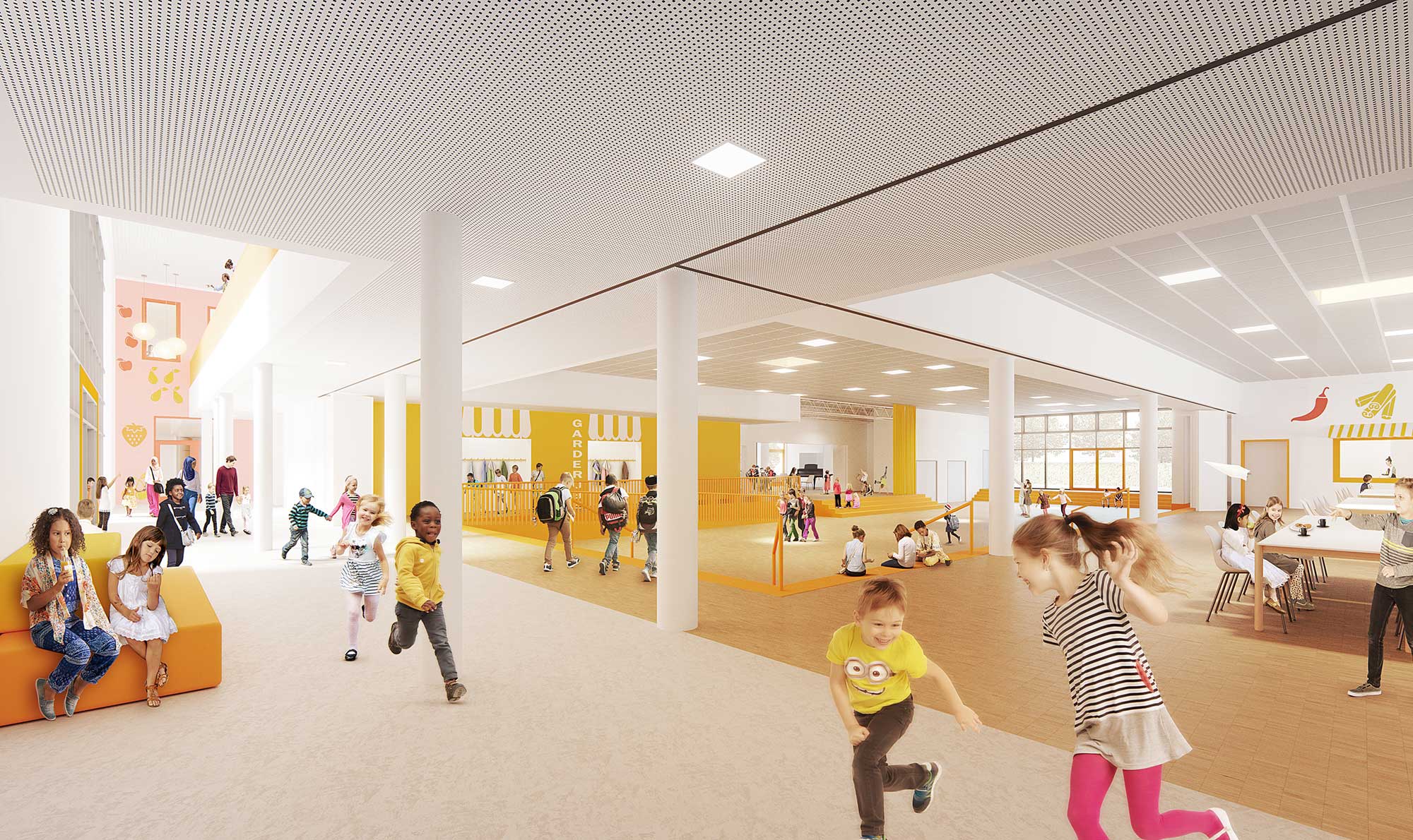 The Mühlenberg district in the south of Hanover is being given a central educational and community center with the replacement building for the primary school. The design takes up the cultural diversity of the district and creates an intercultural marketplace as a meeting place. This new meeting place strengthens the existing qualities of the surrounding area and creates a protected yet open space that symbolizes the intercultural and inclusive orientation of the school.