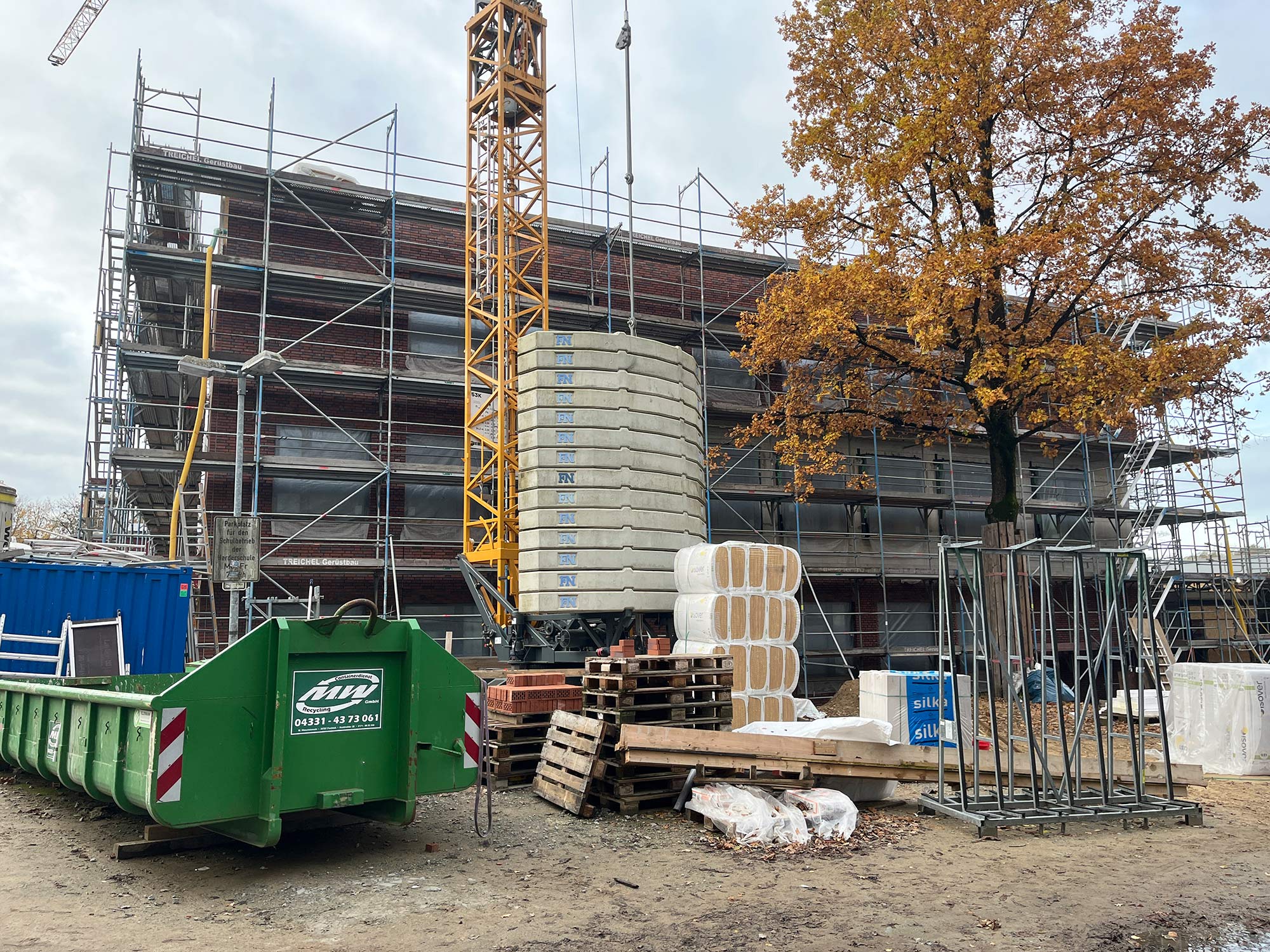 The building is planned to meet the KfW 40-EE standard, uses durable materials such as brick façades and integrates extensive green roofs with a photovoltaic system. Special challenges, such as taking into account the existing pile foundation, were mastered through precise planning. The realisation during ongoing operations also required close coordination between all parties involved in order to ensure a smooth transition for the students during the construction period.