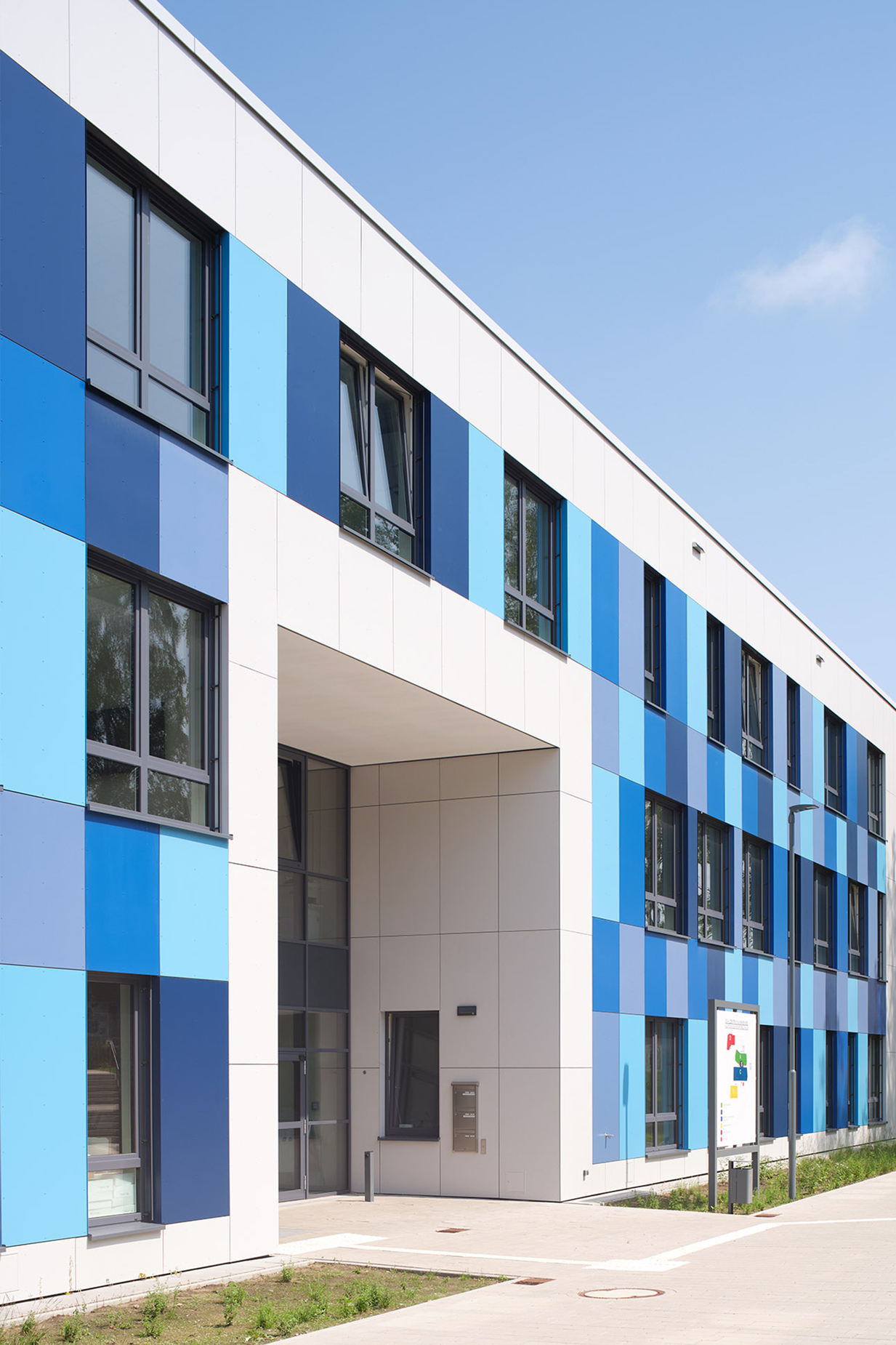 Bremervörde invests in education: At around 24 million euros, the new SEK-I campus is the most expensive building project in the town's history. The »Schulzentrum am Birkenweg« will house the Bremervörde Hauptschule and the Findorff-Realschule, including sports facilities, under one roof. The mixture of different types of schools is unique in the district of Rotenburg. The campus consists of a three-storey main building, which forms the new school ensemble with a separate class building, canteen and existing sports hall.