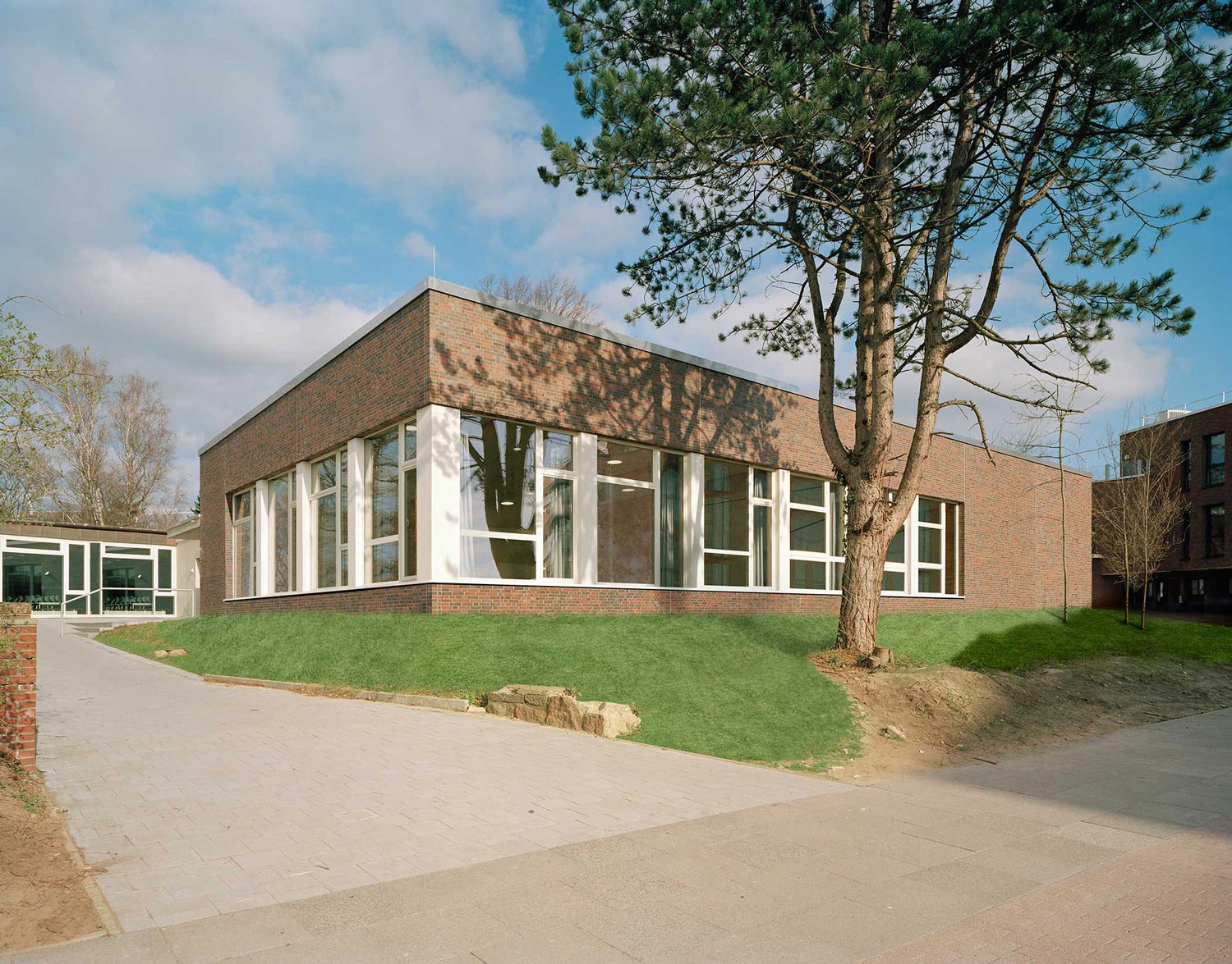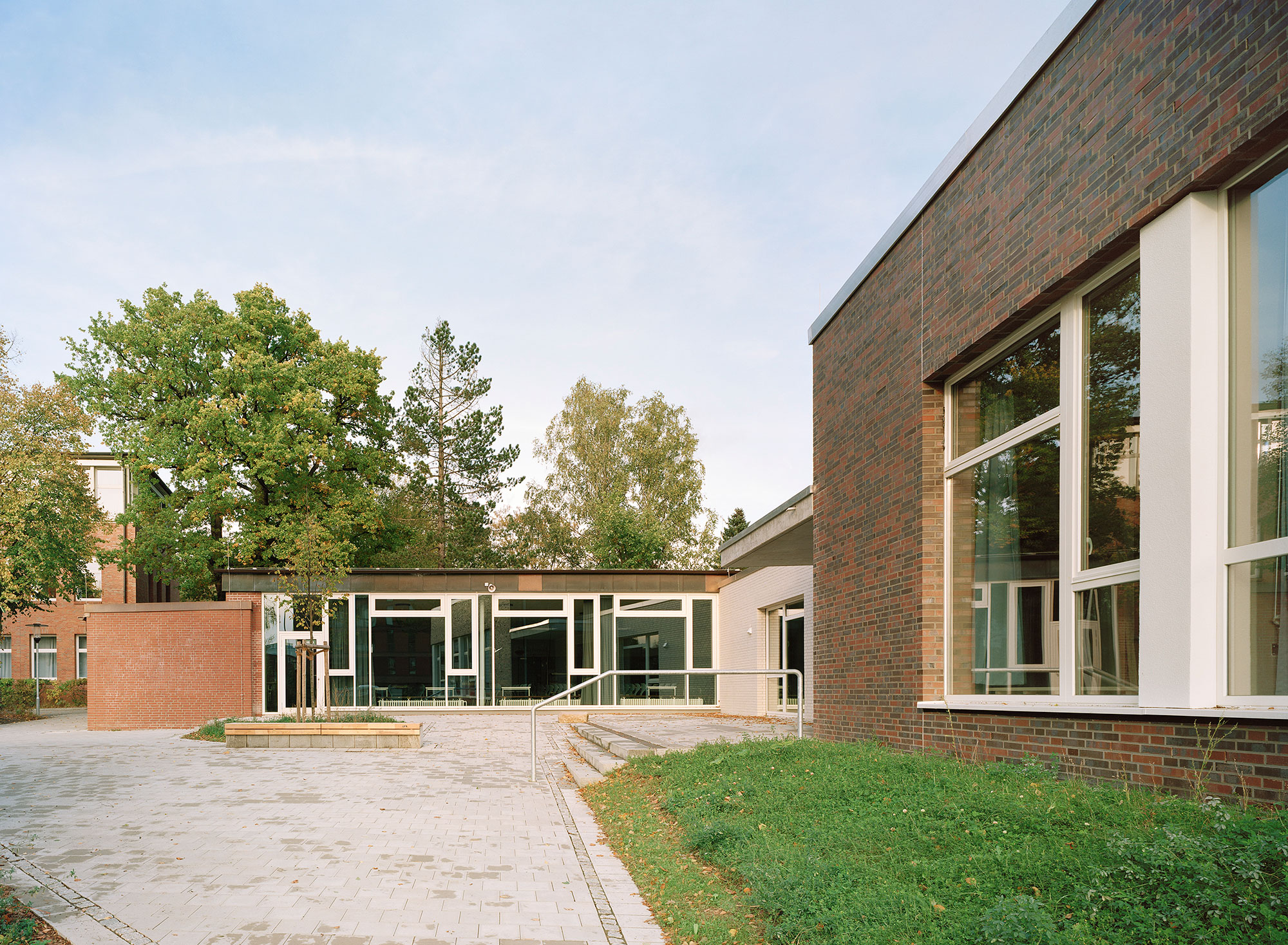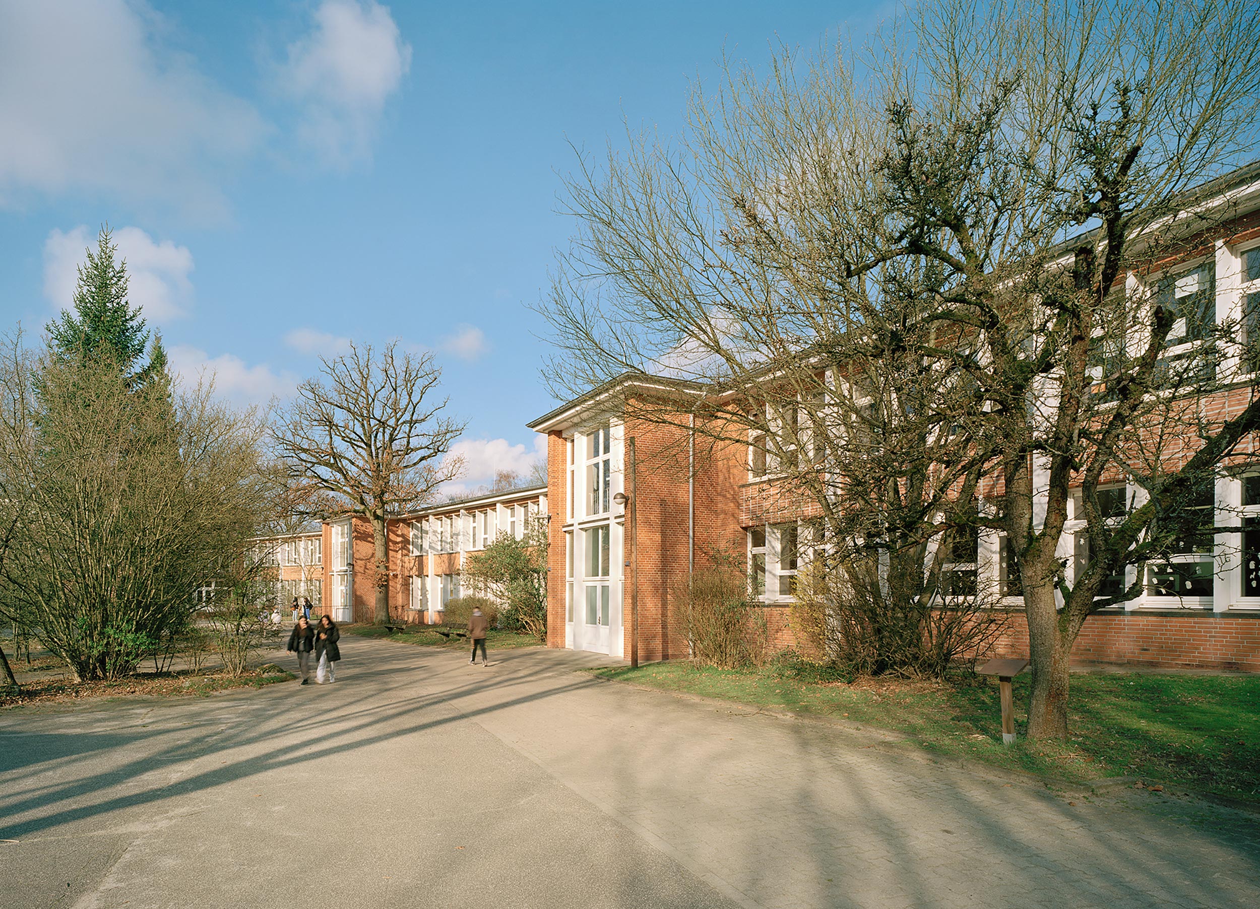 Bramfeld, the green and pastel district to the north-east of Hamburg's city center, almost forms its own city within the city with its independent infrastructure and over 50,000 residents. More than a century after the original construction of the Bramfeld district school and several conversions, it was time for a comprehensive refurbishment including the addition of a break hall. The ageing building complex is undergoing a transformation that honors its historical significance and at the same time paves the way for modern educational concepts. An extensive inspection and assessment of the existing condition formed the basis of the project.