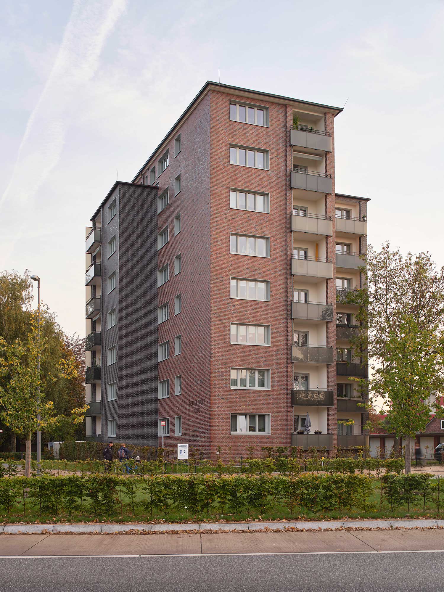 The careful refurbishment not only optimised the energy efficiency of the tower block, but also preserved its original character as a striking building in Finkenwerder. The clinker brick slips combine tradition and modernity and once again make the tower block a distinctive part of the cityscape.